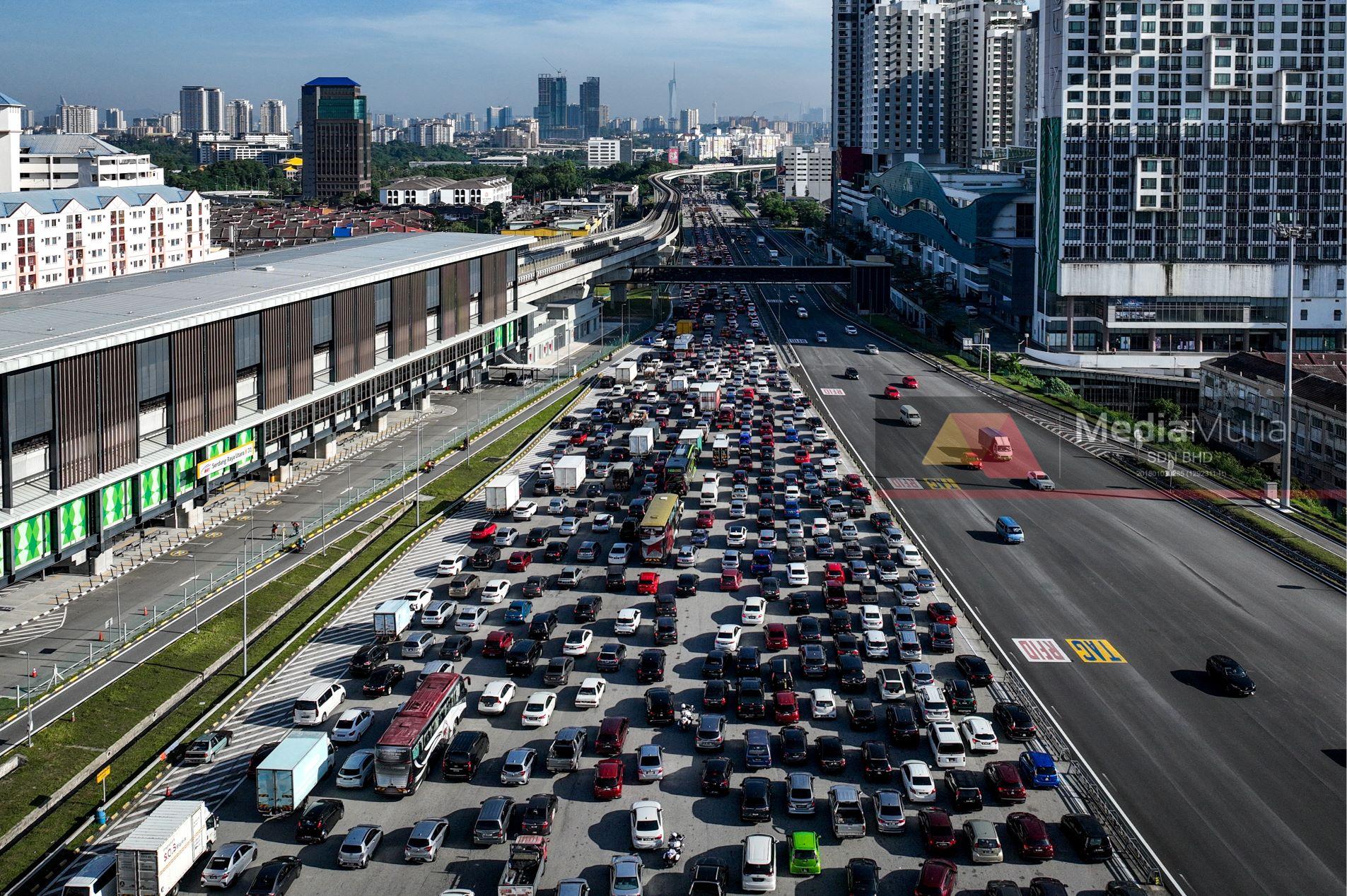 RIBUAN kenderaan terperangkap dalam kesesakan jalan raya selepas Tol Sungai Besi di Kuala Lumpur, semalam. - UTUSAN/MUHAMAD IQBAL ROSLI
