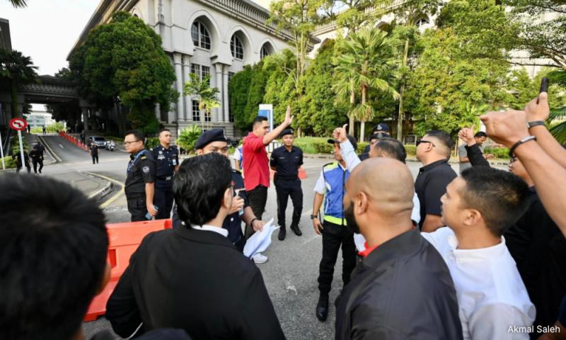 Ketua Pemuda Umno, Dr Muhamad Akmal Saleh hadir ke perhimpunan untuk menunjukkan solidaritinya terhadap bekas Perdana Menteri, Najib Razak.