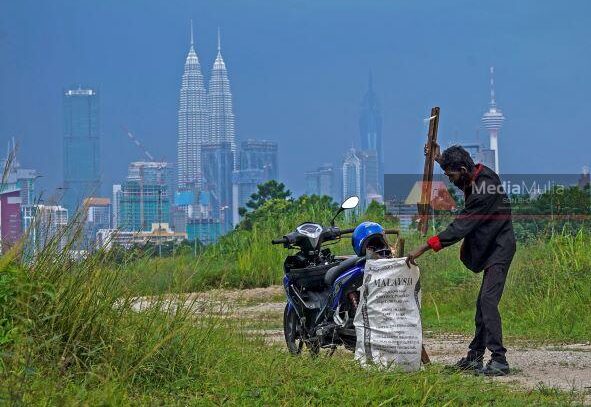 Seorang lelaki mengutip besi buruk di sebuah kawasan lapang untuk dijual berikutan pendapatannya yang bekerja sebagai pengawal keselamatan tidak mencukupi bagi menampung hidup seharian. - UTUSAN/MUHAMAD IQBAL ROSLI